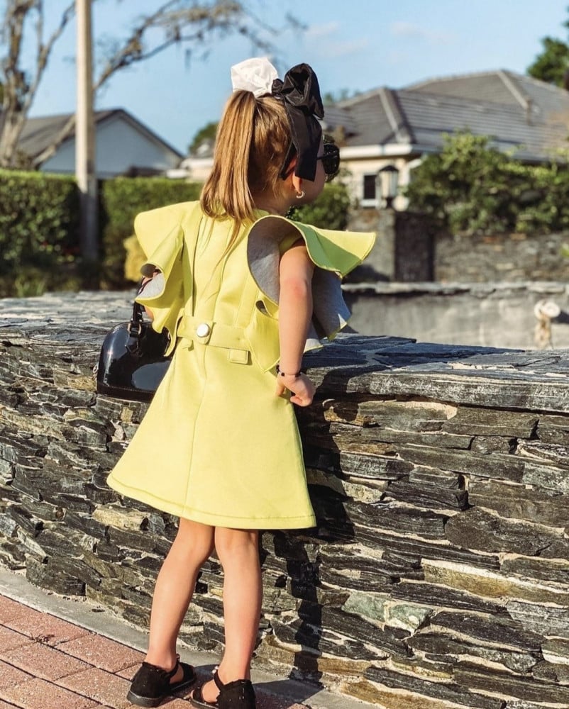 أضفي لمسة من الأناقة العصرية على إطلالة صغيرتك مع فستان أخضر بكرانيش كبيرة، المصمم بروح عصرية تمنحها مظهرًا مميزًا ولافتًا.